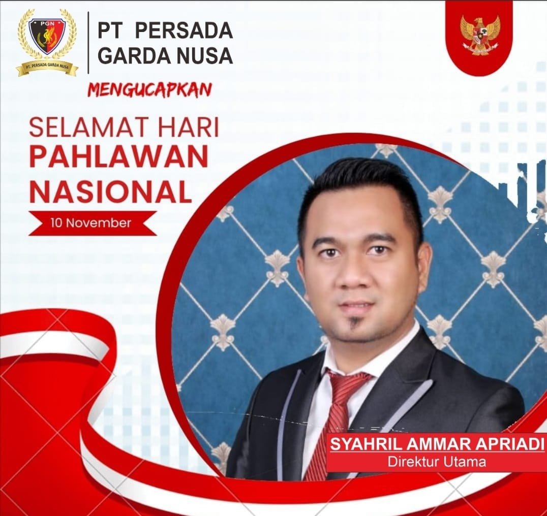 BEKASI | ZONAINDUSTRI.COM – Dalam momentum memperingati Hari Pahlawan Nasional 10 November 2025, Direktur Utama PT Persada Garda Nusa, Syahril Ammar Apriadi, menyampaikan ucapan selamat Hari Pahlawan sekaligus pesan penuh makna bagi seluruh personel satuan pengamanan (Satpam) di seluruh Indonesia.