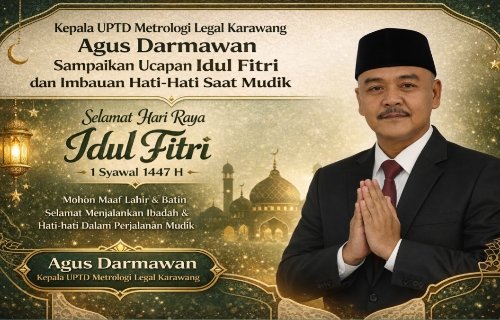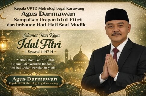 KARAWANG | ZONAINDUSTRI.COM– Menyambut Hari Raya Idul Fitri 1 Syawal 1447 Hijriah, Agus Darmawan, S.E., pejabat di lingkungan Unit Pelaksana Teknis Daerah (UPTD) Metrologi Legal Kabupaten Karawang, menyampaikan ucapan selamat kepada seluruh masyarakat, khususnya warga Karawang yang merayakan hari kemenangan setelah menjalankan ibadah puasa Ramadan.