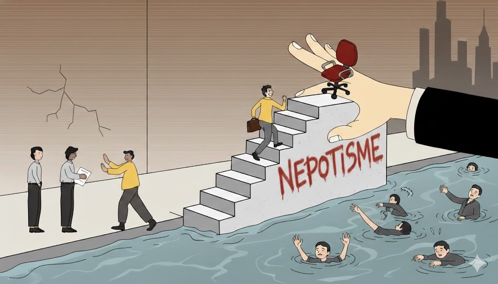 Nepotisme adalah tindakan penyelenggara negara atau pemimpin yang menggunakan kekuasaannya untuk menguntungkan keluarga atau kroni, terutama dalam pengangkatan jabatan. Dampak nepotisme, menggerogoti keadilan, merusak sistem merit (prestasi), dan menciptakan inefisiensi institusi.