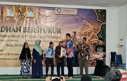 KARAWANG | ZONAINDUSTRI.COM– Komitmen dunia usaha dalam mendukung kesejahteraan masyarakat kembali ditunjukkan melalui program “Ramadan Bersyukur” yang digelar Kawasan Suryacipta bersama . Kegiatan sosial tersebut berlangsung di Desa Mulyasari, Kecamatan Ciampel, Kabupaten Karawang, Rabu (04/03/2026) pagi, dengan menyalurkan 62,98 ton beras serta merealisasikan program bedah rumah bagi dua unit hunian warga di Desa Kutanegara.
