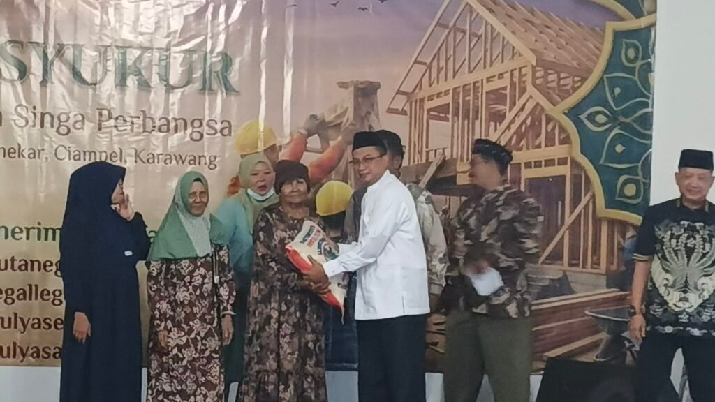 KARAWANG | ZONAINDUSTRI.COM– Komitmen dunia usaha dalam mendukung kesejahteraan masyarakat kembali ditunjukkan melalui program “Ramadan Bersyukur” yang digelar Kawasan Suryacipta bersama . Kegiatan sosial tersebut berlangsung di Desa Mulyasari, Kecamatan Ciampel, Kabupaten Karawang, Rabu (04/03/2026) pagi, dengan menyalurkan 62,98 ton beras serta merealisasikan program bedah rumah bagi dua unit hunian warga di Desa Kutanegara.