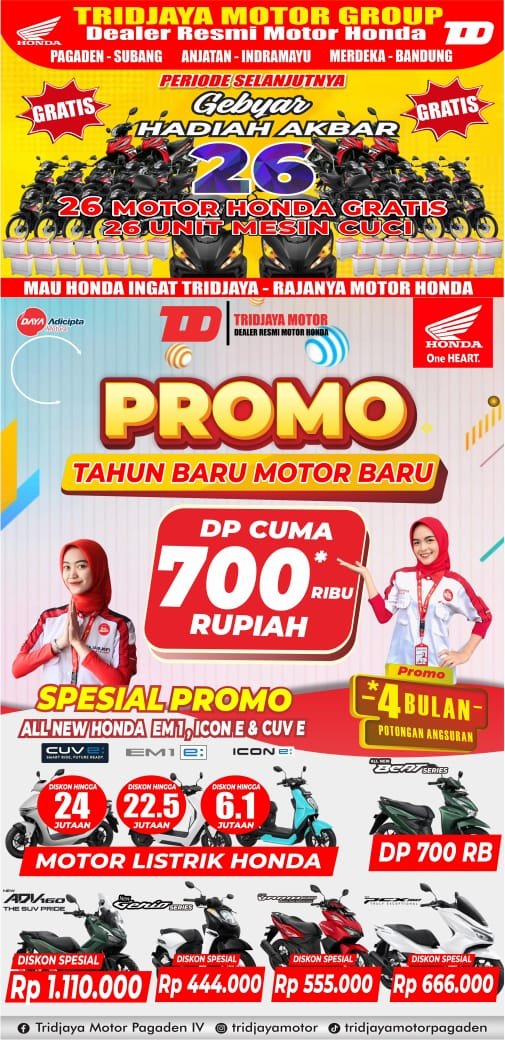 SUBANG | Memasuki awal tahun 2026, Tridjaya Motor Group kembali menghadirkan program penjualan spesial bertajuk “Promo Tahun Baru, Motor Baru”.