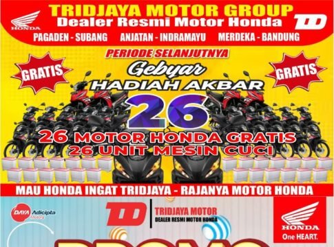 Tak hanya itu, Tridjaya Motor Group juga setiap tahunnya menggelar Gebyar Hadiah Akbar dengan hadiah utama 26 unit motor Honda dan 26 mesin cuci gratis bagi para pelanggan beruntung di seluruh jaringan dealer Tridjaya Motor, yang tersebar di Pagaden, Subang, Anjatan, Indramayu, Merdeka, hingga Bandung.